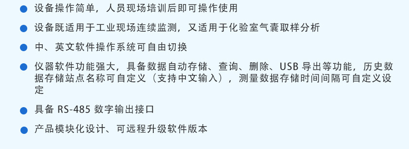 CO、CO2、CH4、CnHm :NDIR非分光紅外; H2:TCD熱導, O2:ECD電化學