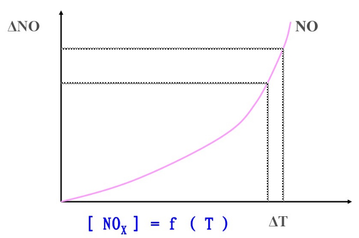 圖1. NOx與溫度關系曲線圖